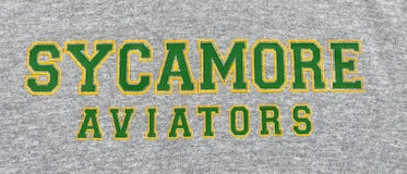 Heather Grey hoodie with Sycamore Aviators across the chest.
